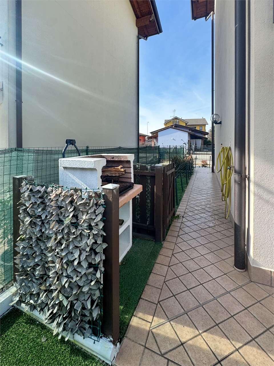 Un angolo di tranquillità a pochi passi dai servizi. In una via chiusa e silenziosa, dove la vita scorre serena tra villette e piccole palazzine, questo alloggio al primo piano unisce comfort, privacy e indipendenza come pochi altri. Vivere come in una villetta, con la comodità di un appartamento: Siamo in Via Fauser, a Bellinzago Novarese, in una palazzina quadrifamiliare del 2012 priva di spese condominiali. L’abitazione, libera su tre lati e con doppia esposizione est–ovest, gode di luce naturale durante tutto il giorno e di un piacevole affaccio sul verde. L’ingresso si apre su un soggiorno luminoso con cucina a vista, facilmente separabile per chi ama distinguere gli ambienti. Un piccolo disimpegno conduce alla zona notte, composta da una camera matrimoniale, una camera singola ampia e un bagno finestrato. Tre balconi servono gli ambienti principali: uno dalla cucina, uno dalla matrimoniale e uno lungo accessibile dal soggiorno e dalla seconda camera. Spazi esterni e indipendenza: Il giardino privato, di circa 140 mq totali fra fronte e retro, si sviluppa su due lati: una parte posteriore già recintata, ideale per momenti di relax o pranzi all’aperto, e una parte anteriore che può essere facilmente delimitata. L’accesso è possibile sia dall’esterno sia direttamente dal box doppio, disposto in larghezza, piastrellato e molto comodo. Comfort e qualità: Ottime condizioni generali, aria condizionata, zanzariere su ogni serramento, impianto solare termico autonomo per ogni appartamento, riscaldamento indipendente, predisposizione per impianto stufa a pellet. Nessuna spesa condominiale: ogni utenza ha il proprio contatore. La soluzione ideale per chi cerca indipendenza, senza rinunciare alla praticità. Perfetto per giovani coppie o famiglie che desiderano un contesto sereno e ben abitato, a pochi metri da scuole e servizi, ma lontano dal traffico. Ti accorgi che è il posto giusto, senza bisogno di parole. Questa descrizione ha valore puramente indicativo e non costituisce elemento contrattuale. Novara Immobiliare fa parte di “CONCLIENTE – Centro Immobiliare Novarese”. Un servizio unico sul territorio, in grado di offrire la forza di 10 agenzie immobiliari che lavorano in esclusiva per te. Novara Immobiliare è socio attivo di FIMAA (Federazione Italiana Mediatori Agenti d’Affari).
